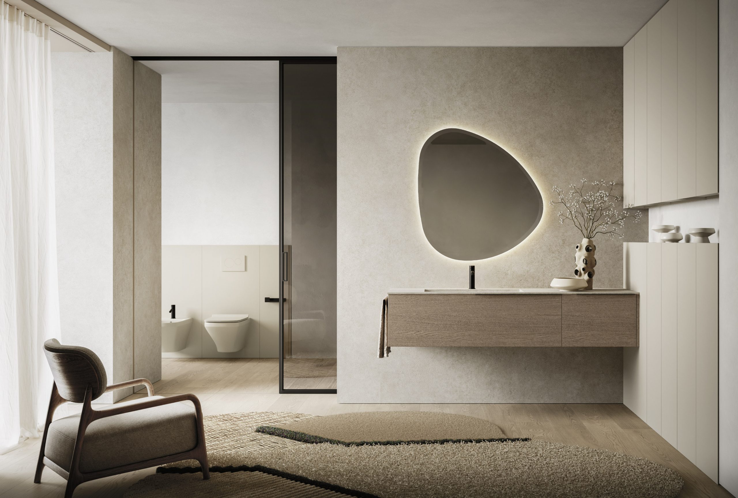 Ho.Me Plus è un’inedita collezione firmata Arbi Arredobagno che raccoglie una vasta gamma di finiture in melaminico termostrutturato dalle venature naturali, ai colori classici o di tendenza. Trasversale nello stile, ho.me plus è disponibile in due varianti: una con anta con maniglia, l’altra con presa maniglia «J» integrata. Flessibile nell’ambientazione grazie alla scelta fra tre profondità e diverse larghezze, la collezione è arricchita dalla versione curva, che propone basi dalle linee morbide per soddisfare anche le esigenze di ottimizzazione degli spazi più ristretti.