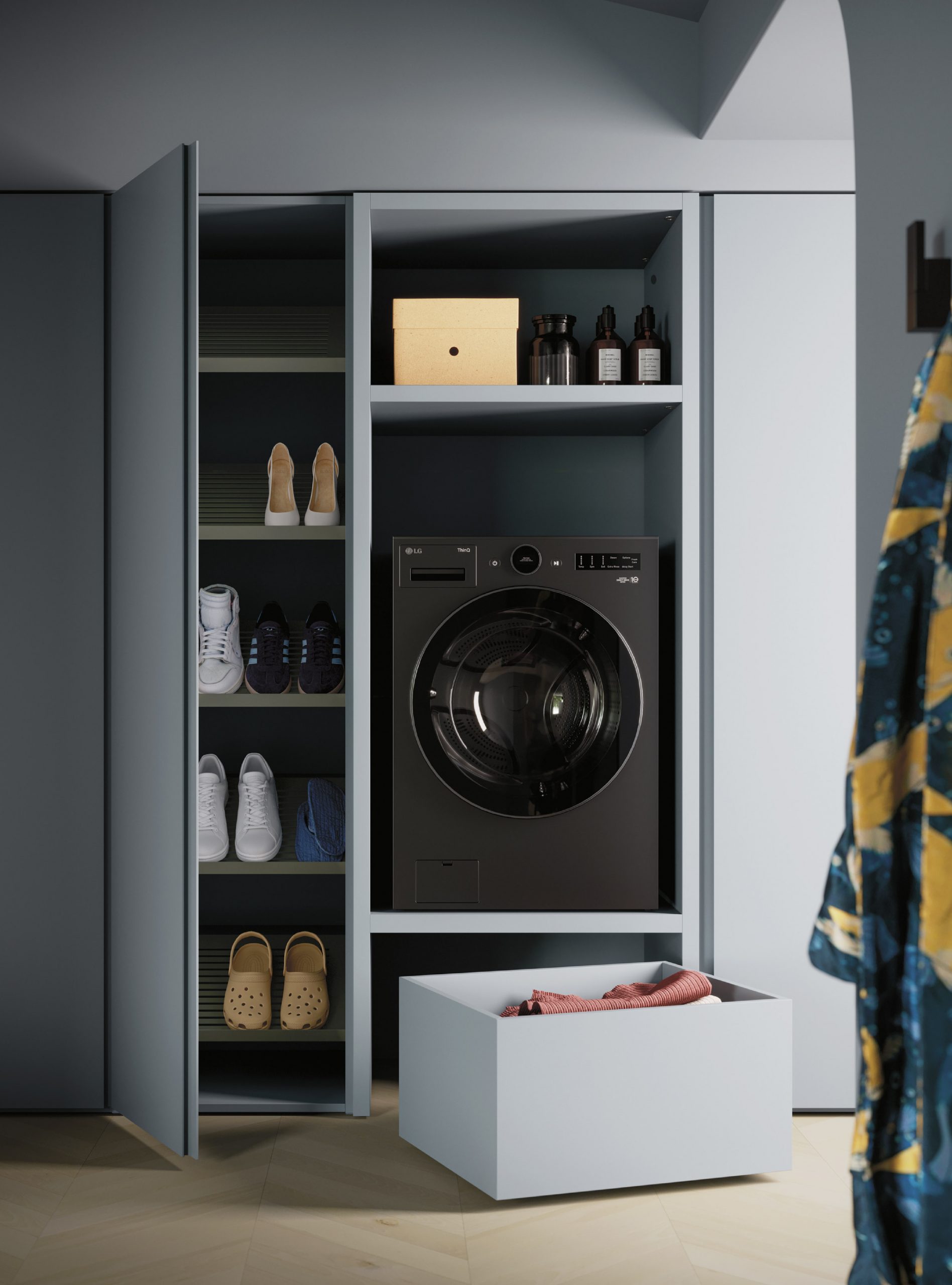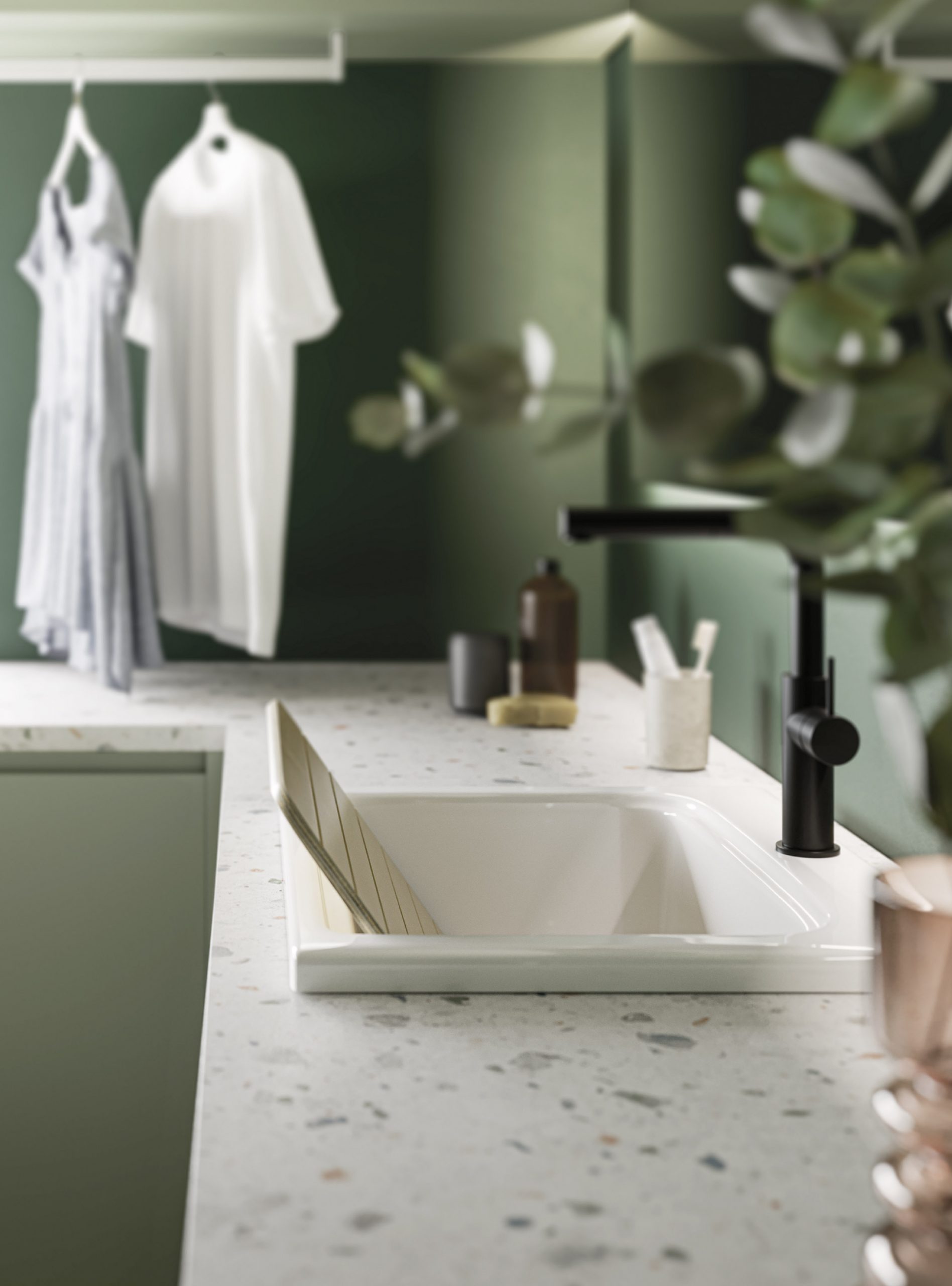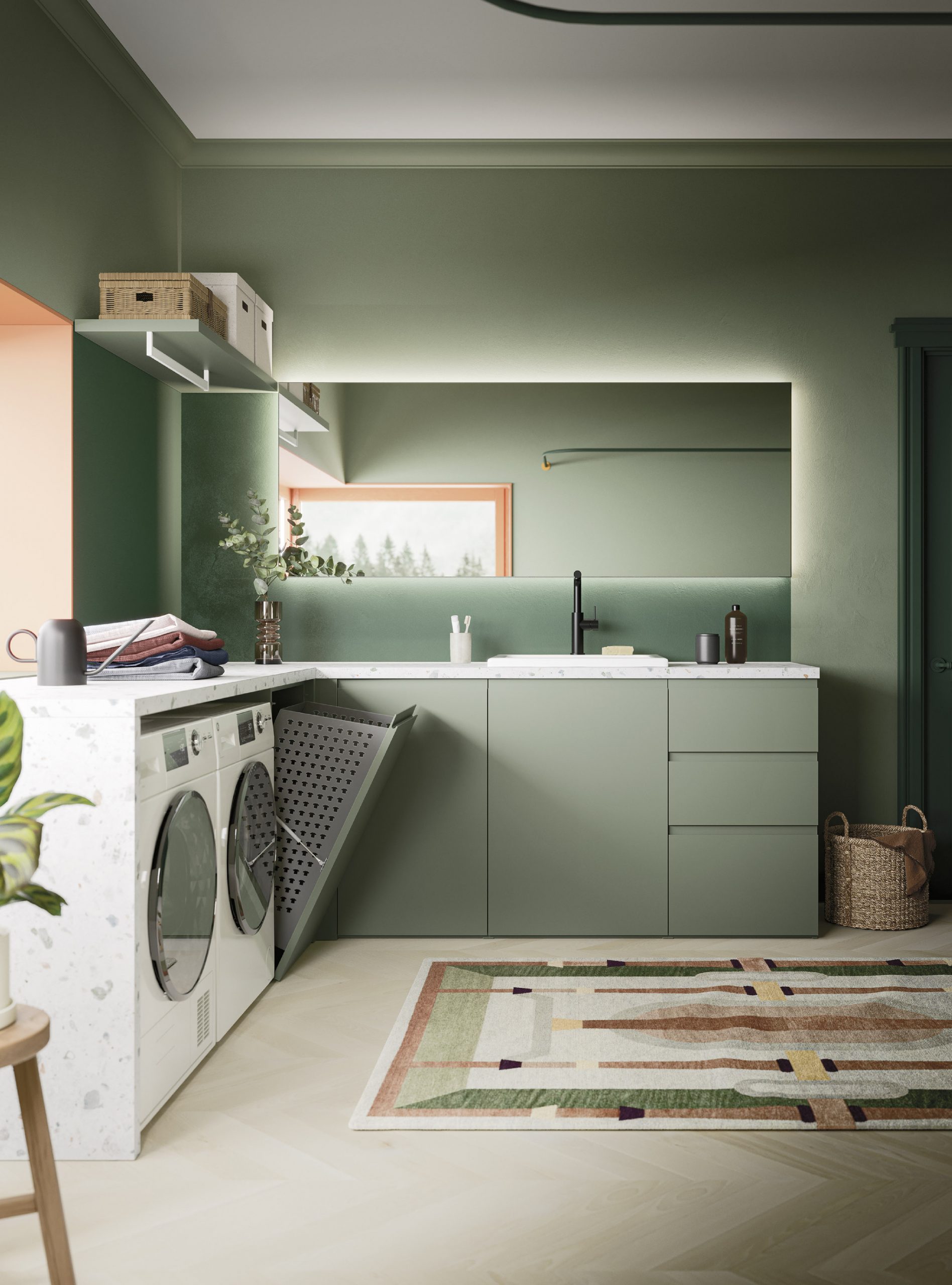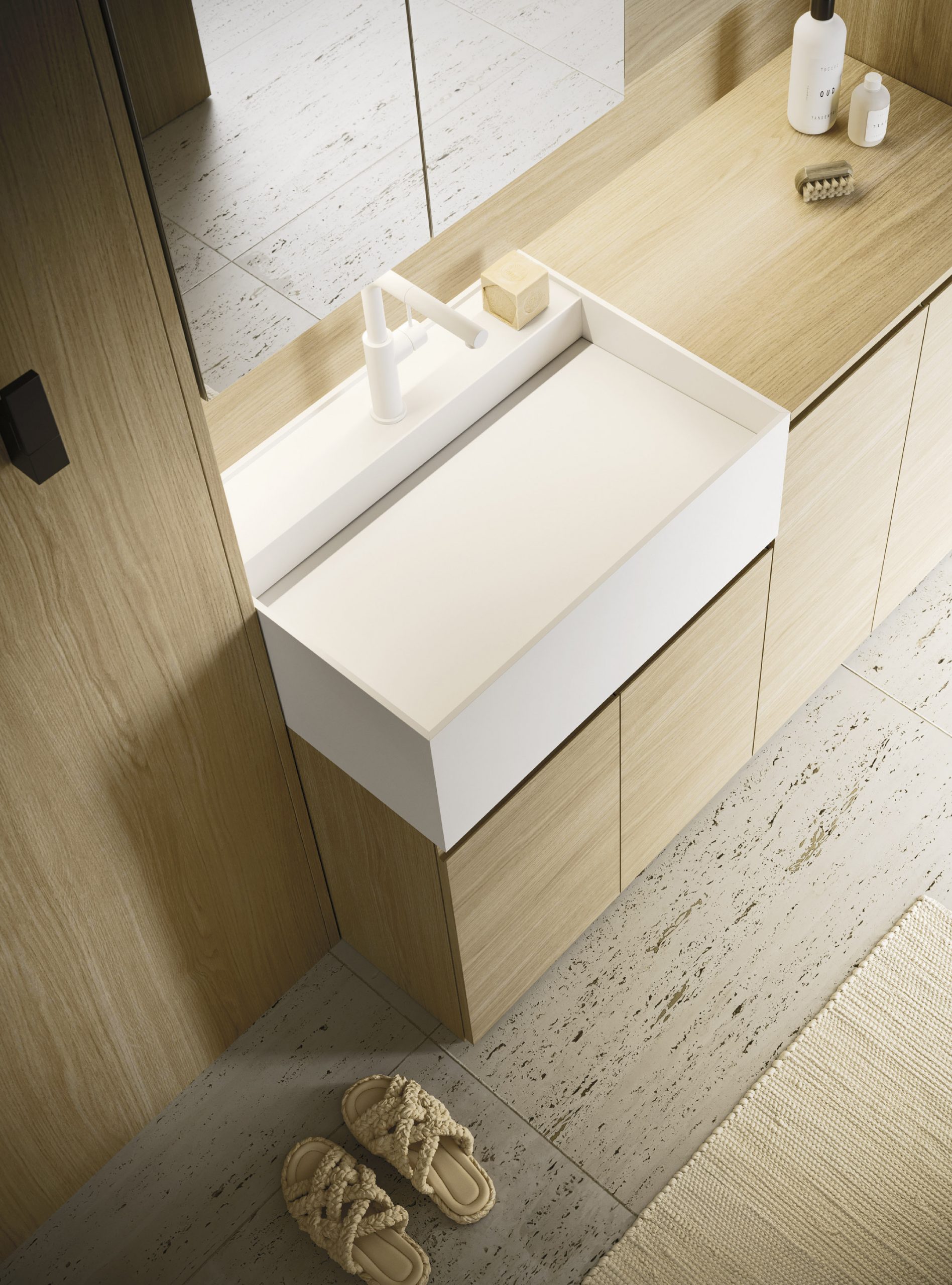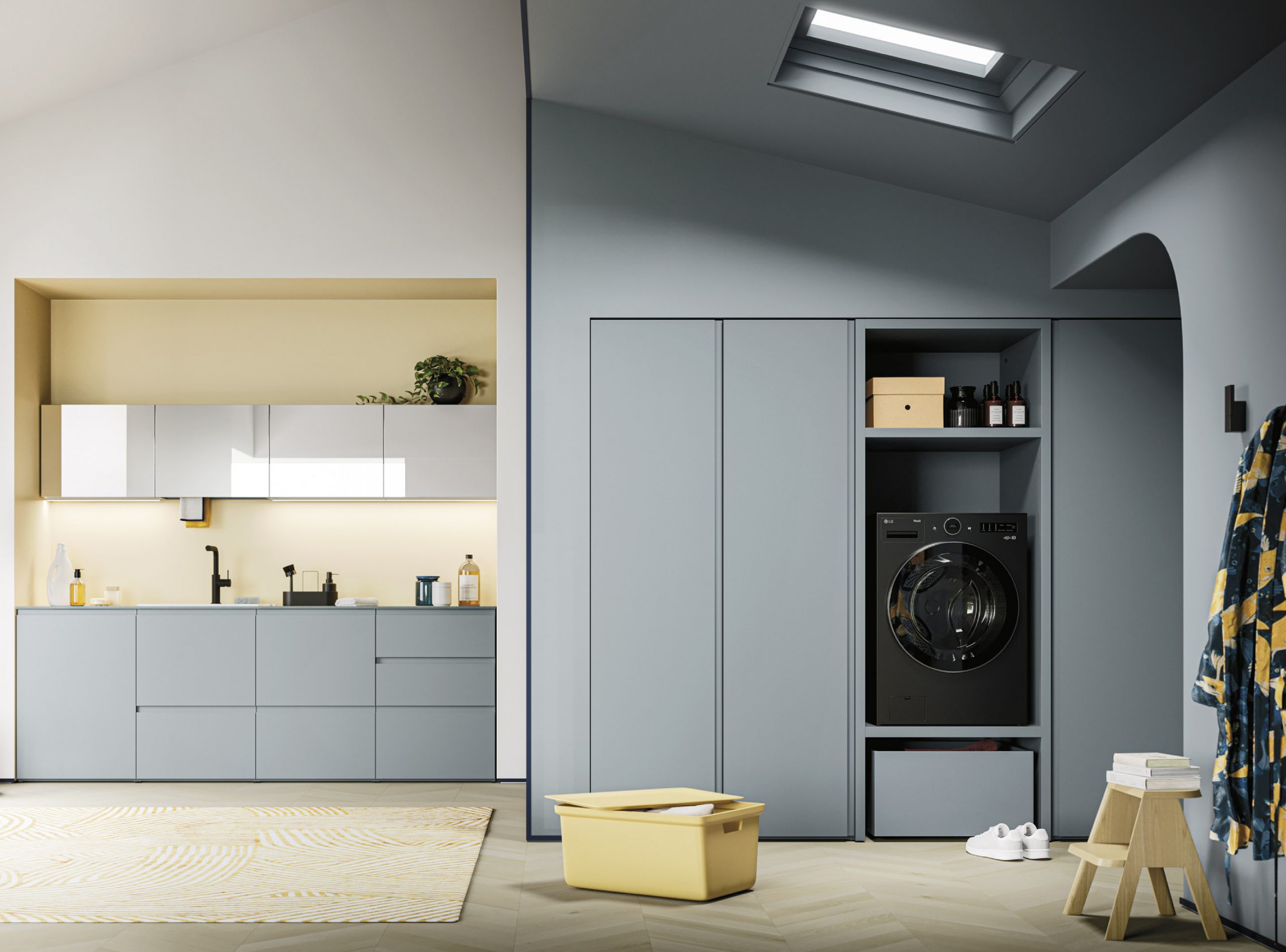 Arbi предлагает различные решения для интерьера постирочной: просторные и модульные тумбы, вместительные контейнеры, универсальные шкафы, раковины, созданные с характеристиками эстетической привлекательности, функциональности и долговечности. Постирочная, в своей функции обслуживания, с Bolle сохраняет всю свою красоту, проект, организующий и улучшающий техническое помещение, превращая его в наполненное функциями и ощущениями место. Универсальная и аккуратная коллекция, предлагаемая с гладкой дверцей и дверцей J, в многочисленных вариантах отделки из термоструктурированного меламина, а также матовый лак, velvet и глянцевый.