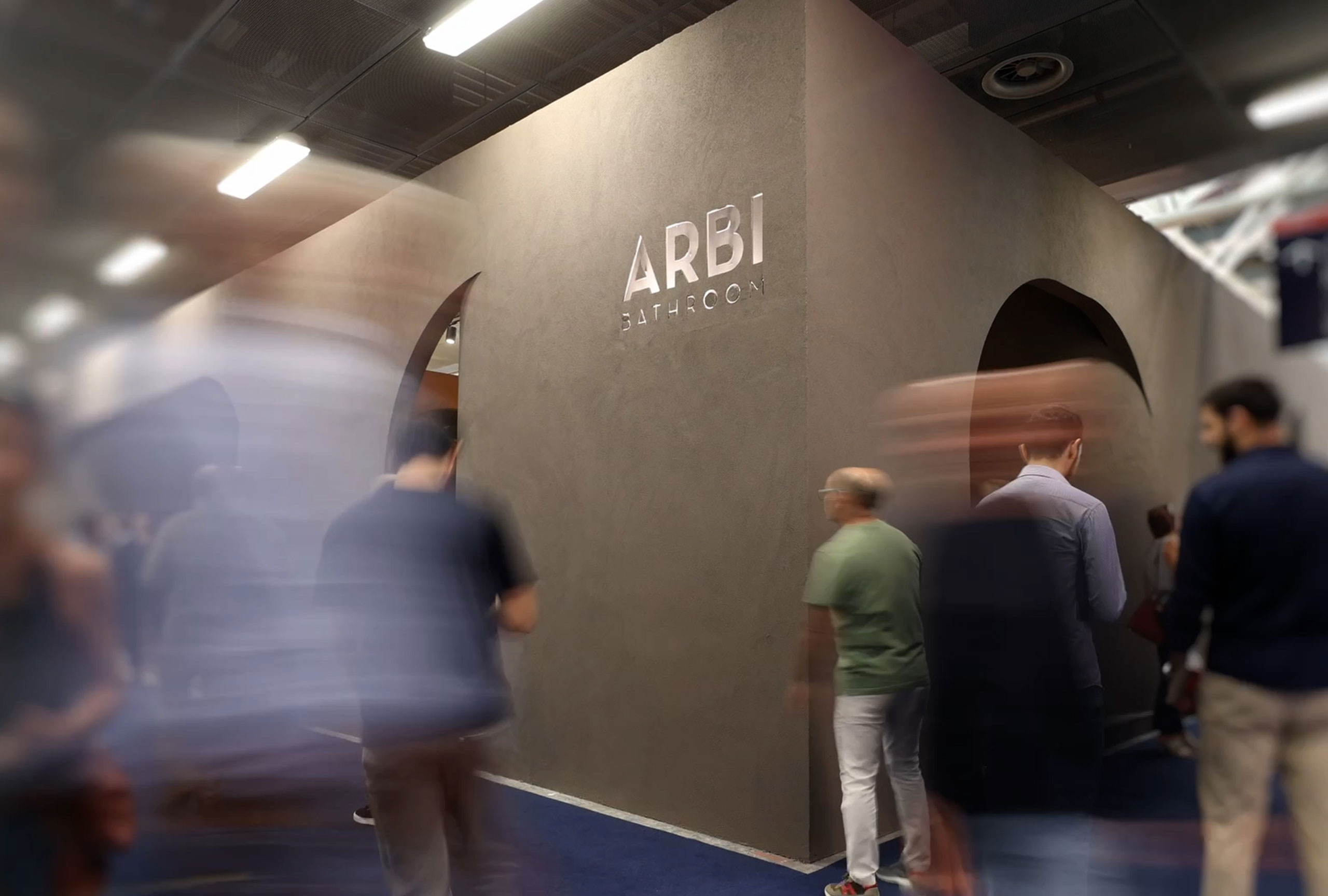 The Arbi stand at Cersaie 2025 is a sensory experience that captures visitors' attention right from the exterior architecture, welcoming them into its enveloping and refined atmosphere through the symbol of the arch.