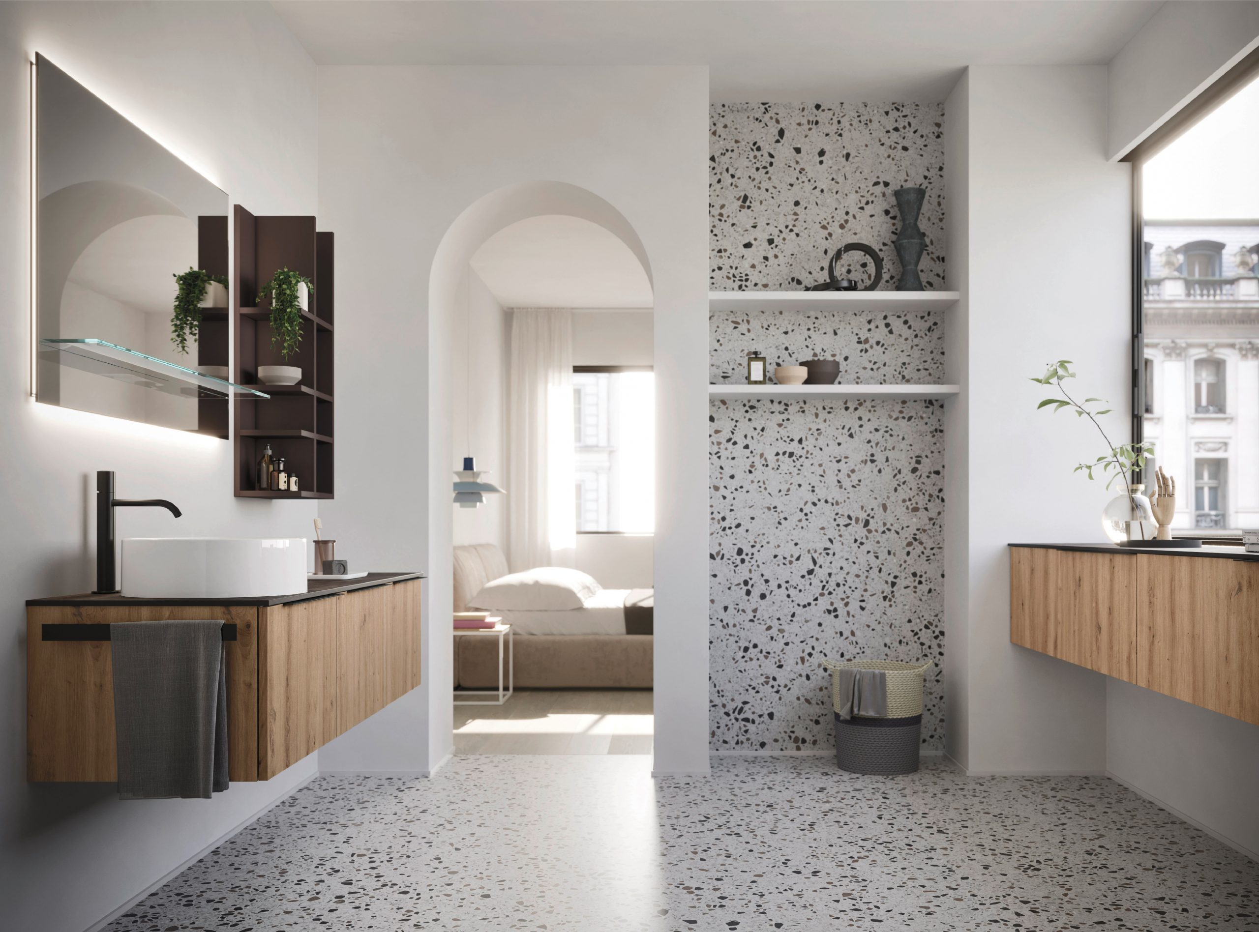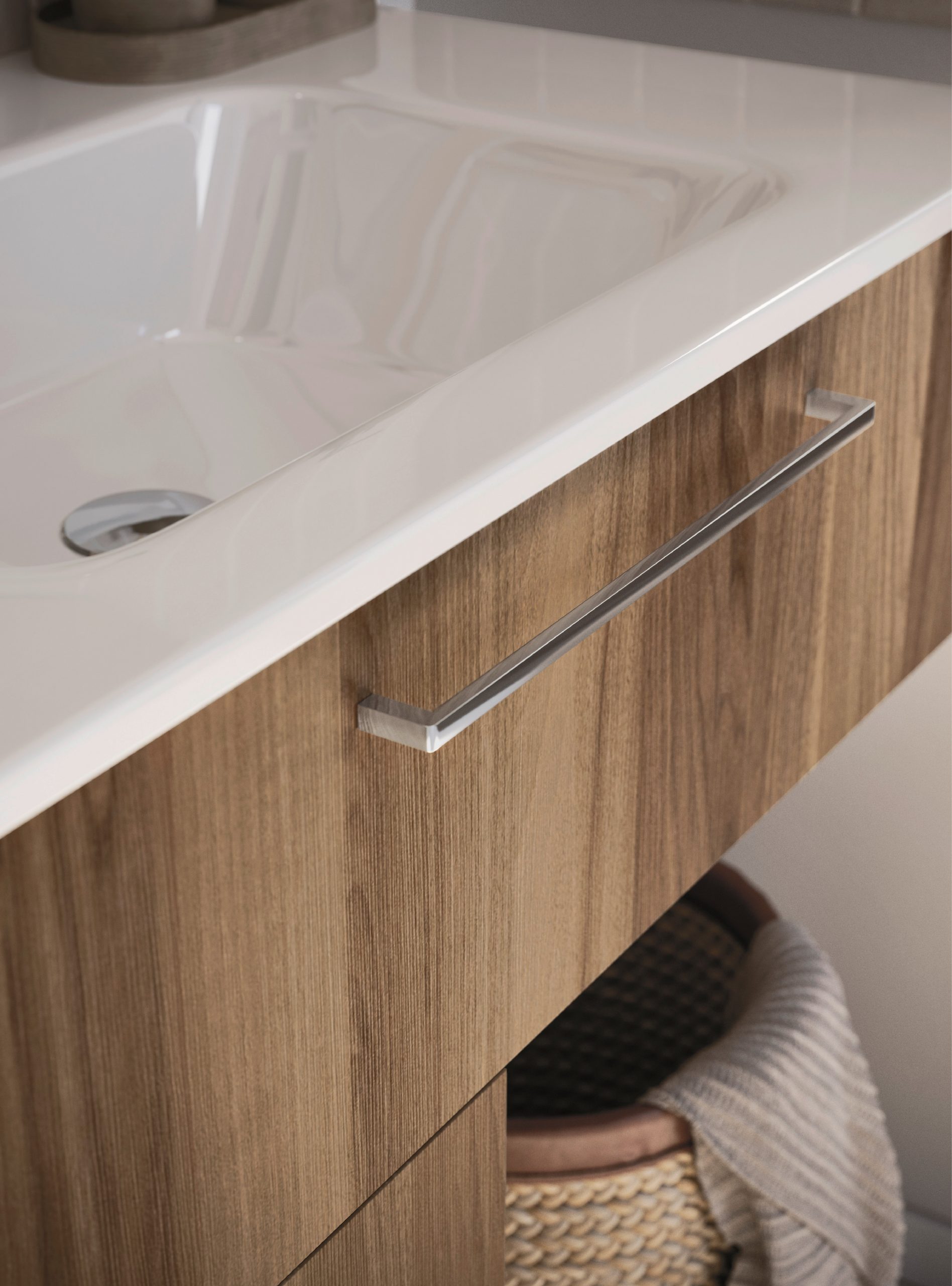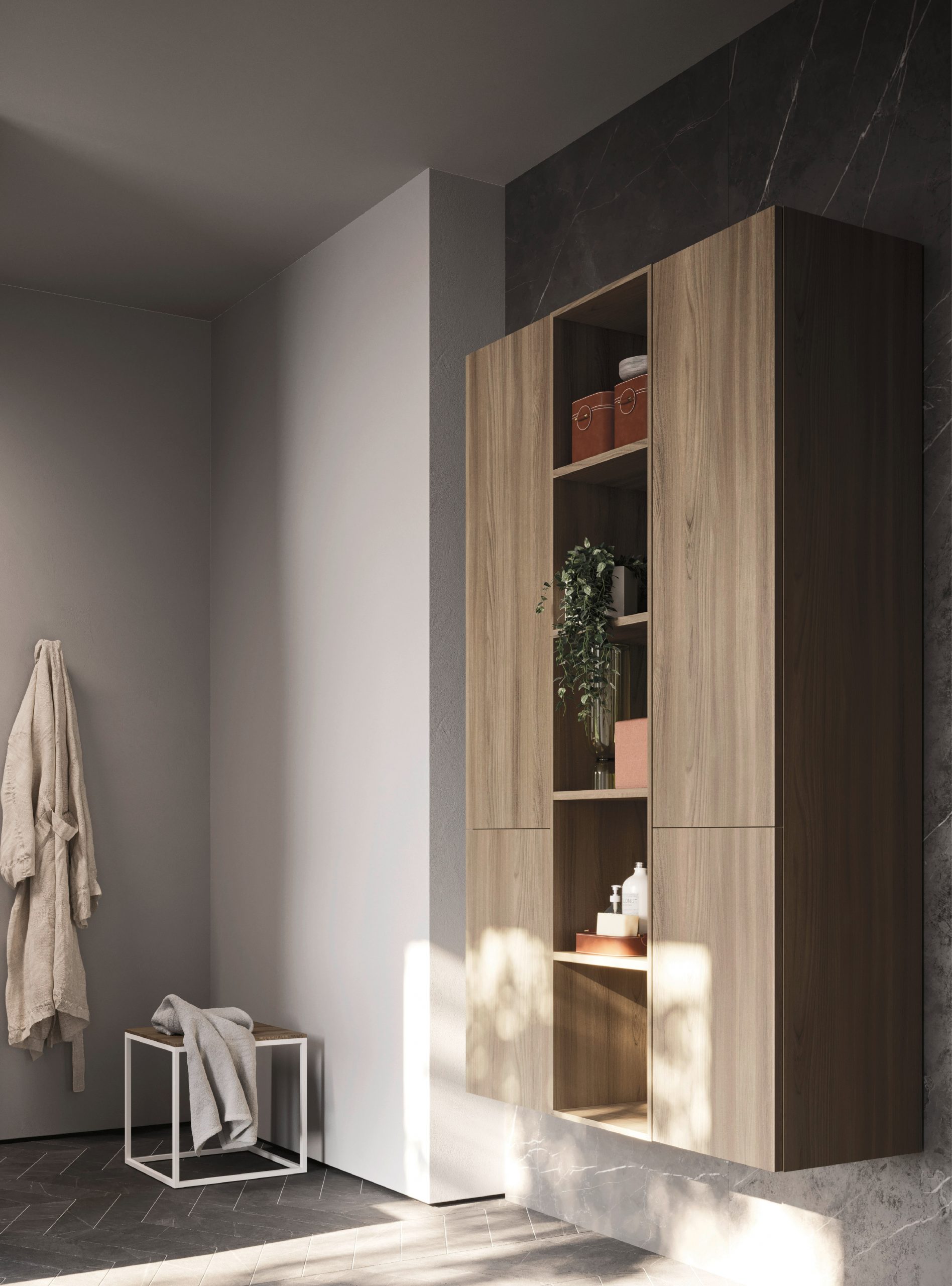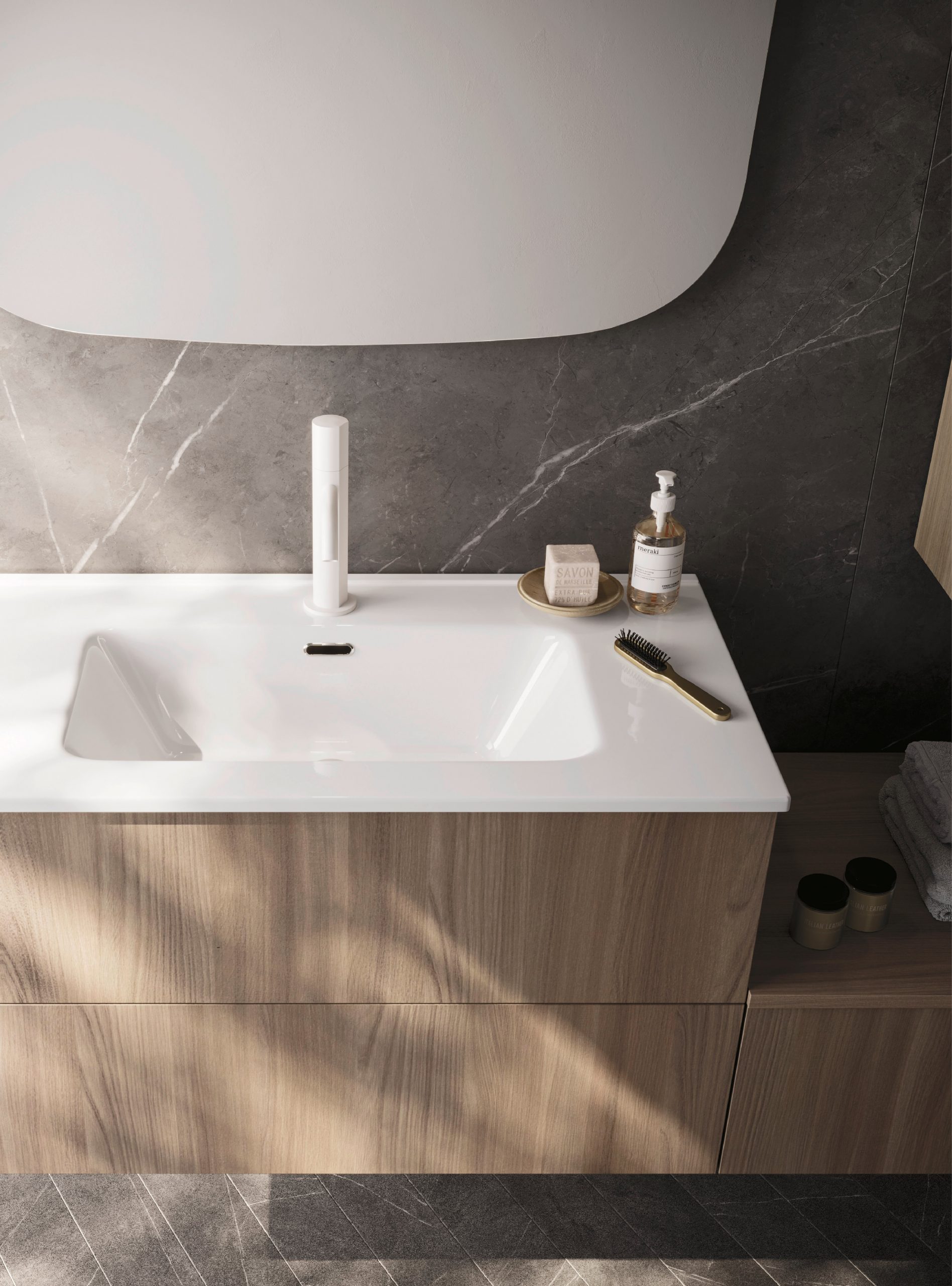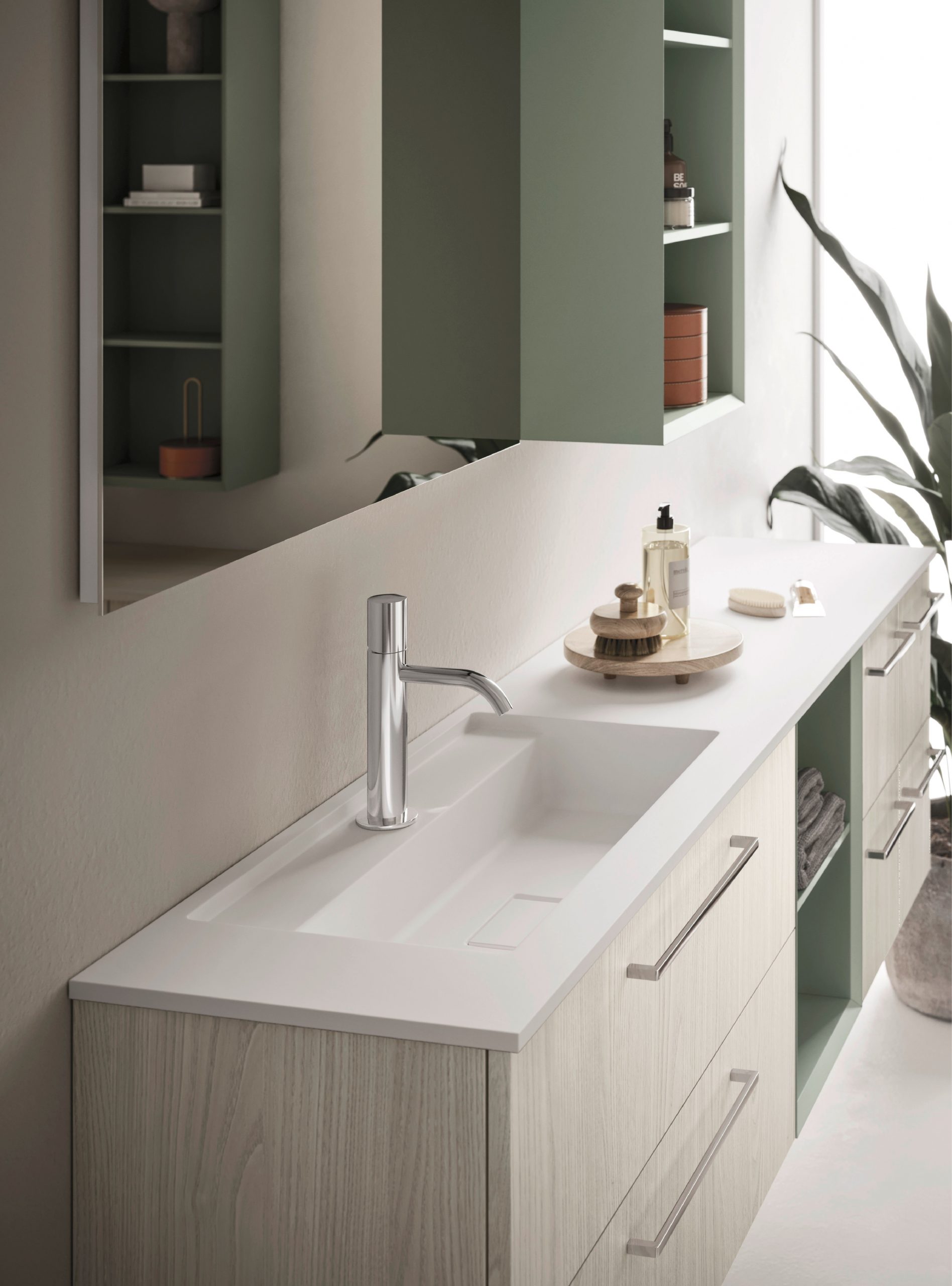 Ho.Me Plus è un’inedita collezione firmata Arbi Arredobagno che raccoglie una vasta gamma di finiture in melaminico termostrutturato dalle venature naturali, ai colori classici o di tendenza. Trasversale nello stile, ho.me plus è disponibile in due varianti: una con anta con maniglia, l’altra con presa maniglia «J» integrata. Flessibile nell’ambientazione grazie alla scelta fra tre profondità e diverse larghezze, la collezione è arricchita dalla versione curva, che propone basi dalle linee morbide per soddisfare anche le esigenze di ottimizzazione degli spazi più ristretti.