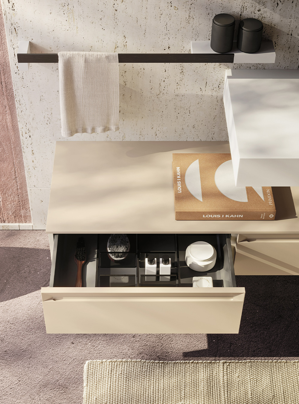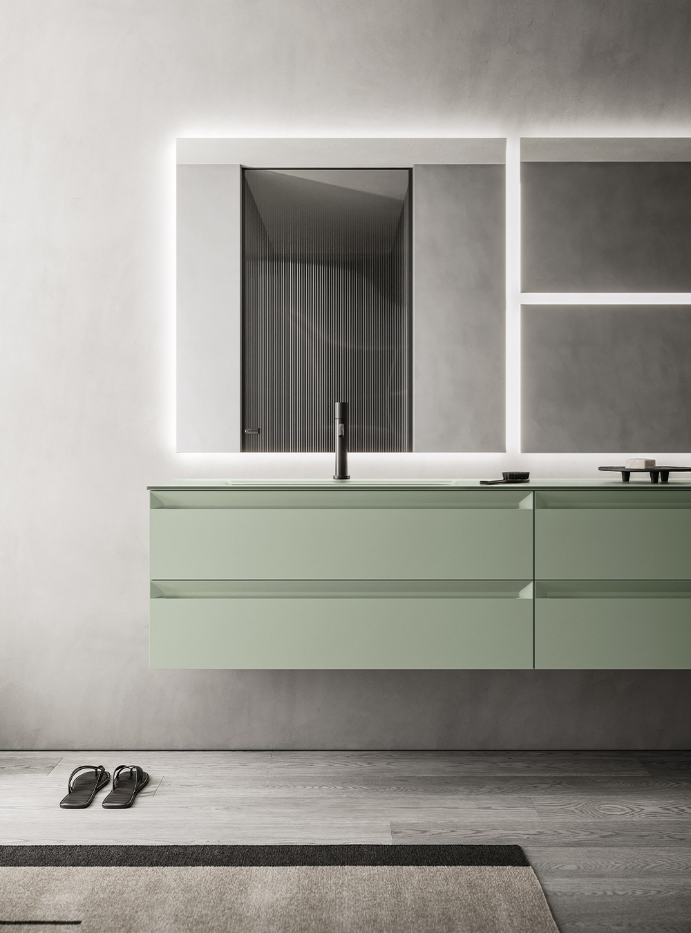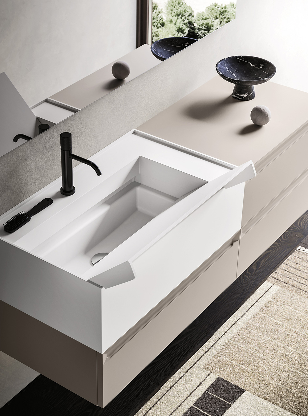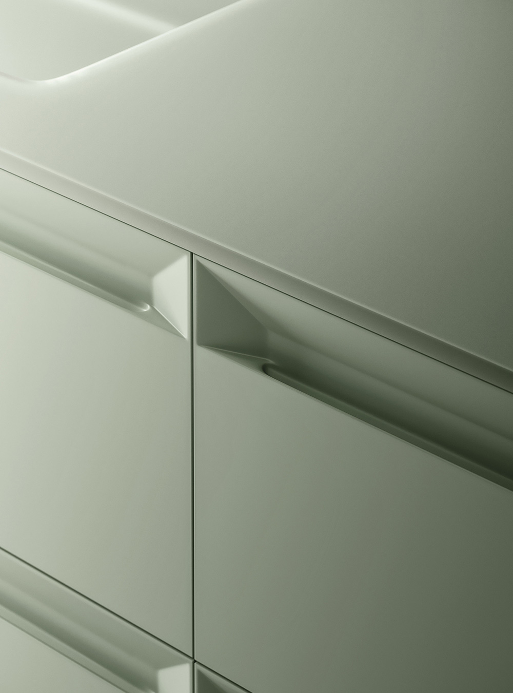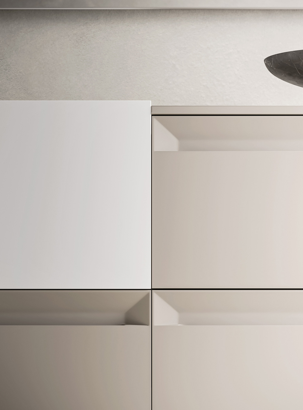Встроенная ручка fold с наклоном в 45° кажется, что приветствует и сопровождает вас за руку, это элемент, который характеризирует проект, превращающий сущность в гибкость. Модульность проекта и выбор между несколькими цветовыми и текстурными оотделками, позволяют интерпретировать любое пространство особенным образом.