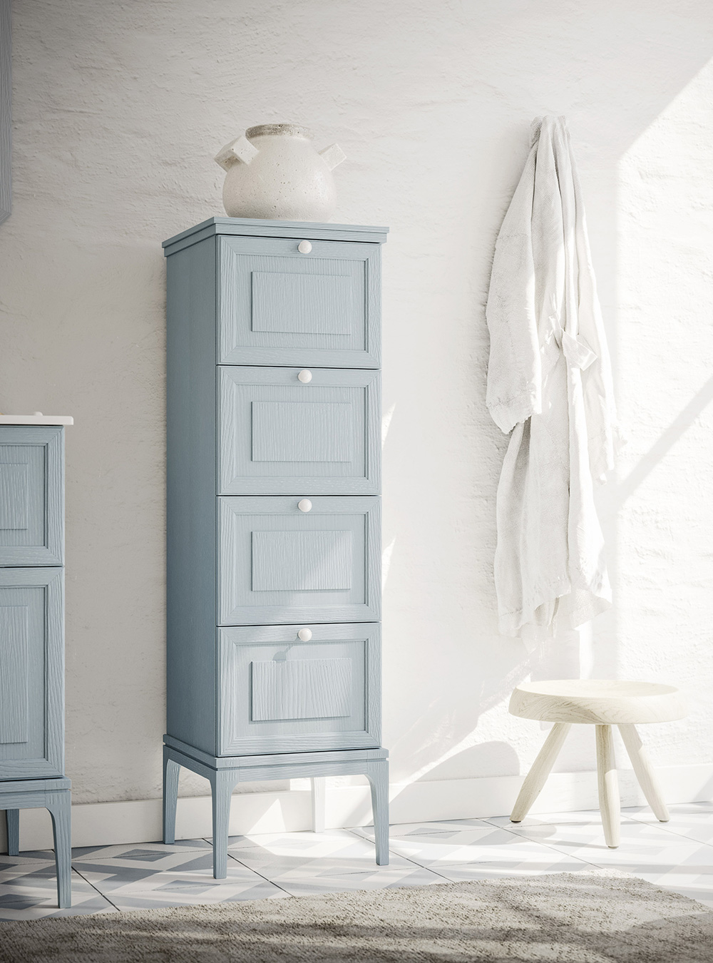 Коллекция Maison переосмысливает стилистические особенности прошлого в современном ключе, позволяя ощутить атмосферу прошлого посредством классической мебели для ванных комнат. Дверь с рамой из шпонированного массива дерева, цоколь и фигурные ножки – все это характерные элементы коллекции, предлагаемой в различных вариантах отделки ясеня в пастельных тонах. Стиль шебби-шик характерен для множества элементов, которые придадут любой ванной комнате утонченность и стильность.