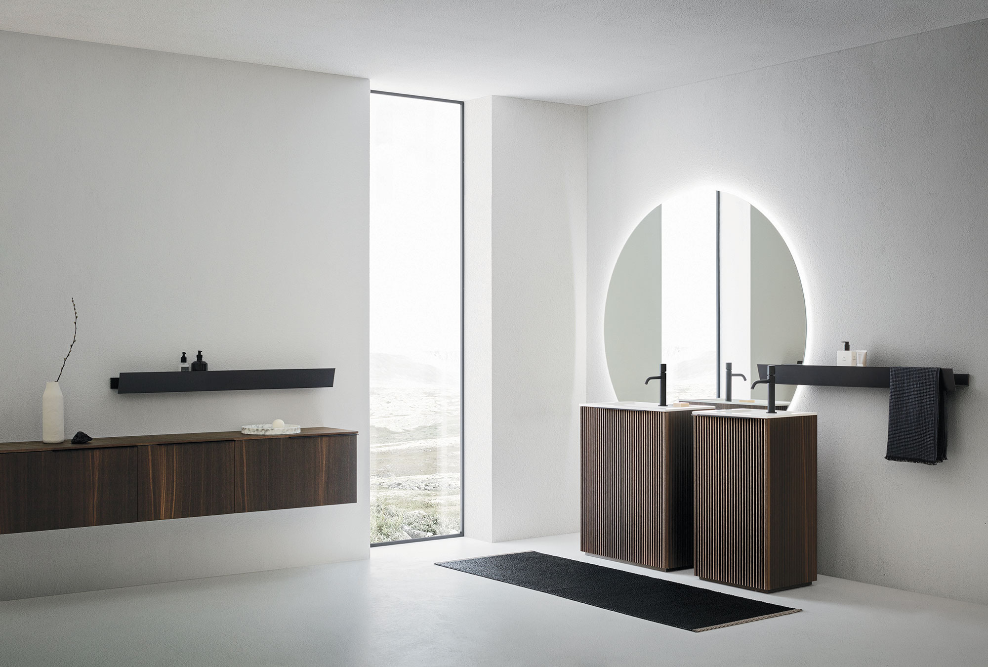 Коллекция мебели для ванных комнат Sky воплощает в себе лаконичность и элегантность благодаря современной дизайнерской мебели для ванных комнат с прямыми и изысканными линиями. Проект, в котором рациональность и эстетика сходятся и представлены в умелых композициях материалов и объемов, выражении глубоких мебельных традиций. Sky, для которой были всегда характерны гладкие дверцы, расширяет свою коллекцию и теперь предлагается в четырех новых «специальных» вариантах: Sky U, Sky Gola, Sky Ondina и Sky Pregiati, которые предназначаются для меблировки различных ванных комнат с утонченной гармонией.